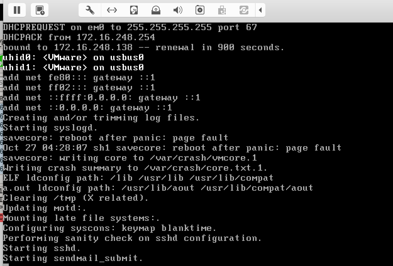 首先对于漏洞环境的搭建我不讲解了,在我的微信公众号上发了一篇文章专门讲解FreeBSD环境的搭建,包括内核调试,vmtools安装等等,环境搭建好之后,通过执行poc.py,发现程序重启,重启过程中,/var/crash下会生成崩溃信息。