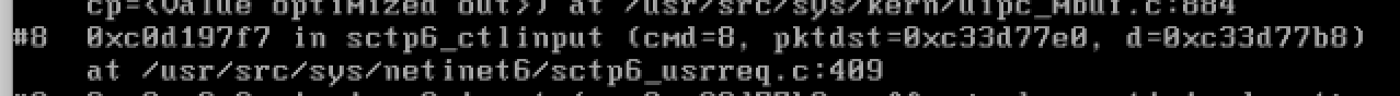 但是在上面bt回溯的图中,可以看到m的值为value optimized out,说明这时栈出现了问题,但还有一种方法就是回到外层函数,看看外层函数参数传递的情况,这样我们追溯到#8位置。sctp6_usrreq.c第409行。