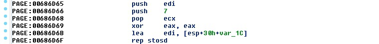 Figure 3. Inlined memset code used to reset memory in nt!NtRequestPort (Windows 7)