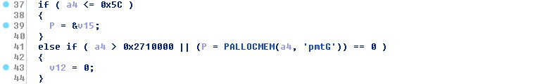 It's interesting to note that even in the vulnerable form of the routine, memory disclosure was only possible when the first (stack) branch was taken, and thus only for requested buffer sizes of up to 0x5c bytes. That's because the dynamic PALLOCMEM pool allocator does zero out the requested memory before returning it to the caller: