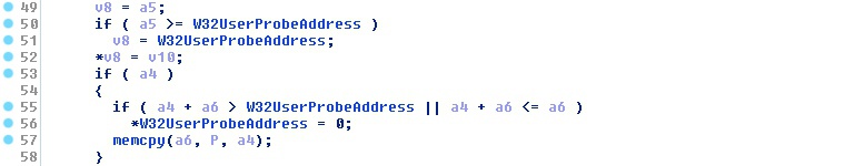 Furthermore, the issue is also a great example of how another peculiar behavior in interacting with user-mode may contribute to the introduction of a security flaw (see slides 32-33 of the Bochspwn Reloaded deck). The code pattern at fault is as follows: