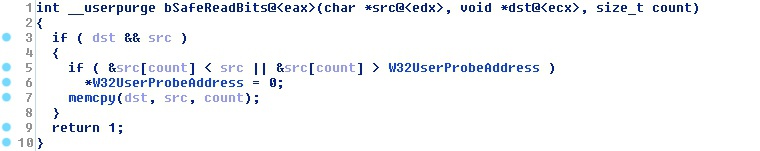 Figure 13. Function body of win32k!bSafeReadBits