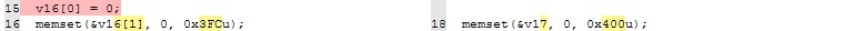 The inconsistent memset which gave away the existence of the bug is as follows: