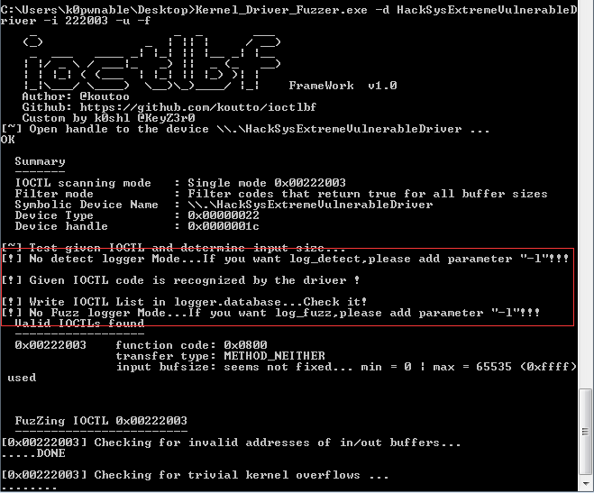 "-i" :待Fuzz的ioctl code,默认从0xnnnn0000-0xnnnnffff
