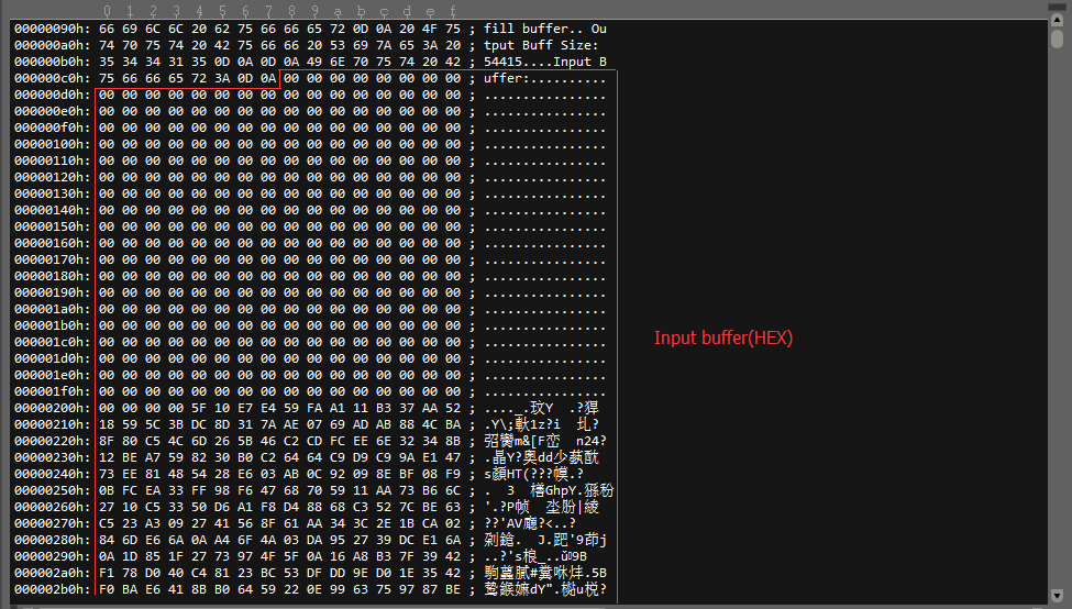 第二步会测试某些溢出,这个实际上在探测阶段也算间接做过了,但是这里我用0x10000大小的buffer做为传入,同样input buff size大小也会很大。