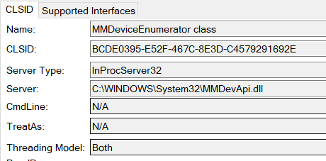IMMDeviceEnumerator通过MMDeviceEnumerator class创建实例,这个类是一个InprocServer,因此实际上这里创建的是一个进程内调用过程。