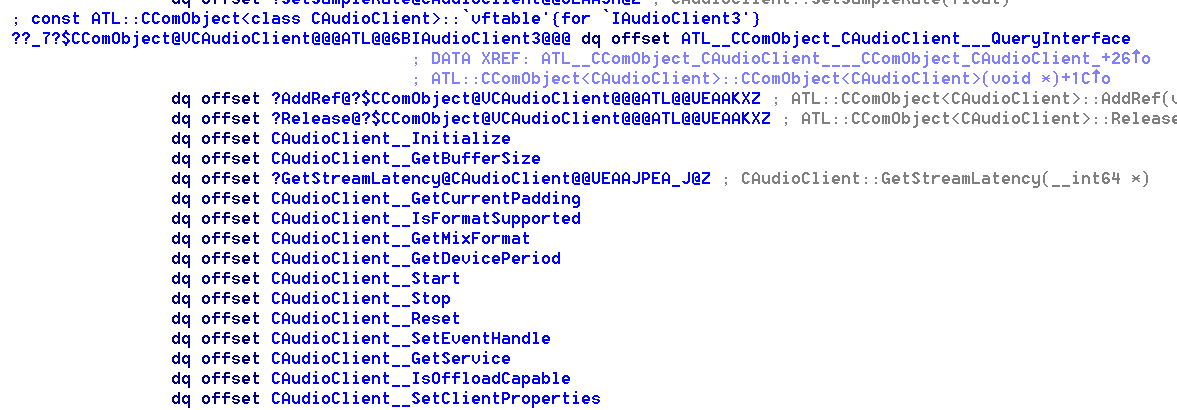 而IAudioClient接口实现依然是一个进程内接口,接口中方法的代码实现在AudioSes.dll中。