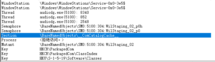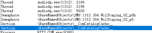 当然关于section的创建并不是在AudioServerInitialize中完成的,这就是第二个有趣的地方,如果想正常调试james forshaw的PoC的内容,我们需要kill掉taskhostw进程,同时kill掉audiodg.exe,这时候不要再做其他的声卡相关操作,否则又会在audiosrv触发创建audio.srv流程(比如SndVol.exe进程)。