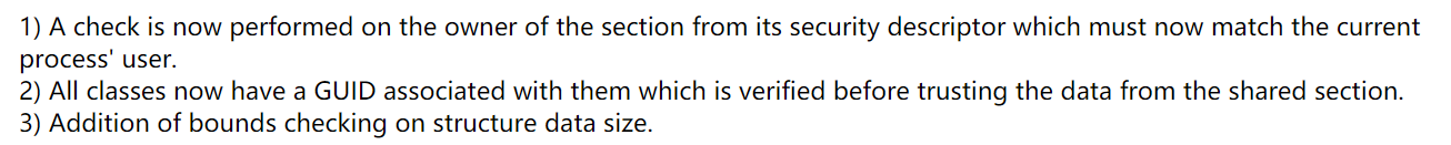 关于这一系列漏洞的成因可以参考james forshaw以及看雪-王cb的帖子,王cb用c++方法重构了james forshaw关于DfMarshal中DuplicateHandle条件竞争(TOCTOU)的漏洞攻击流程,两者都可以作为参考,王cb帖子中关于漏洞成因的逆向工程已经十分详尽,这里就不再赘述。